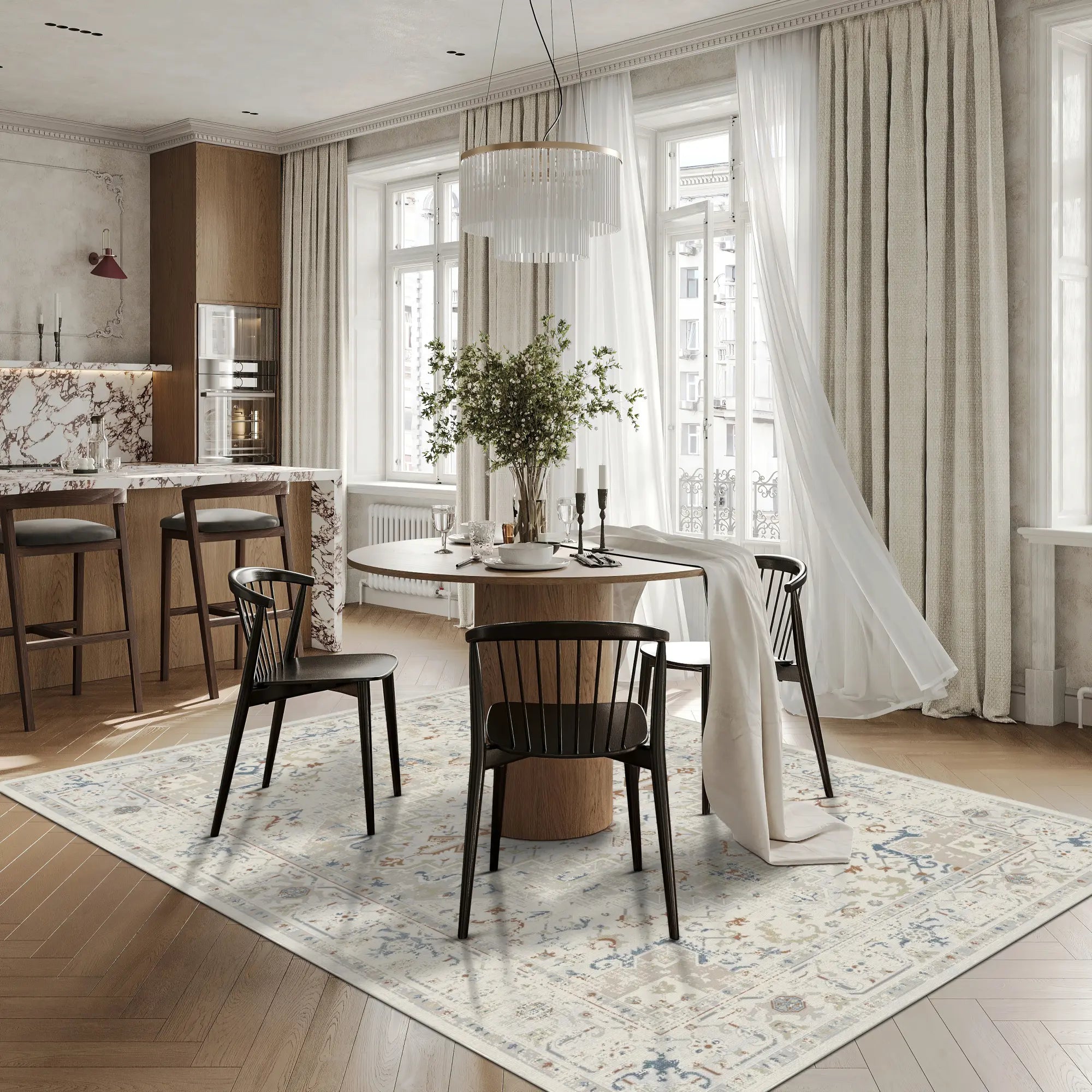 Helle & luftige Farbpalette: Der leuchtende Elfenbein- und Sandhintergrund reflektiert das natürliche Licht und lässt Ihren Raum größer wirken.