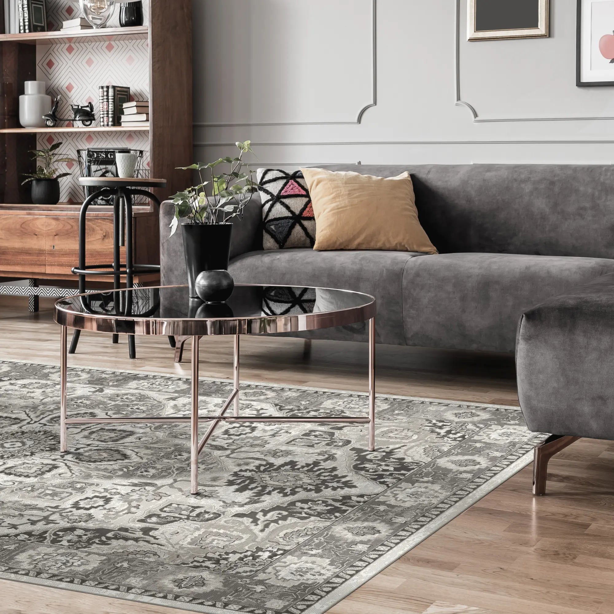 Scharfe architektonische Klarheit: Im Gegensatz zu verwitterten Stilen verfügt dieser Teppich über ein hochauflösendes Muster mit klaren Linien, die Ihrem Raum sofort Struktur verleihen.