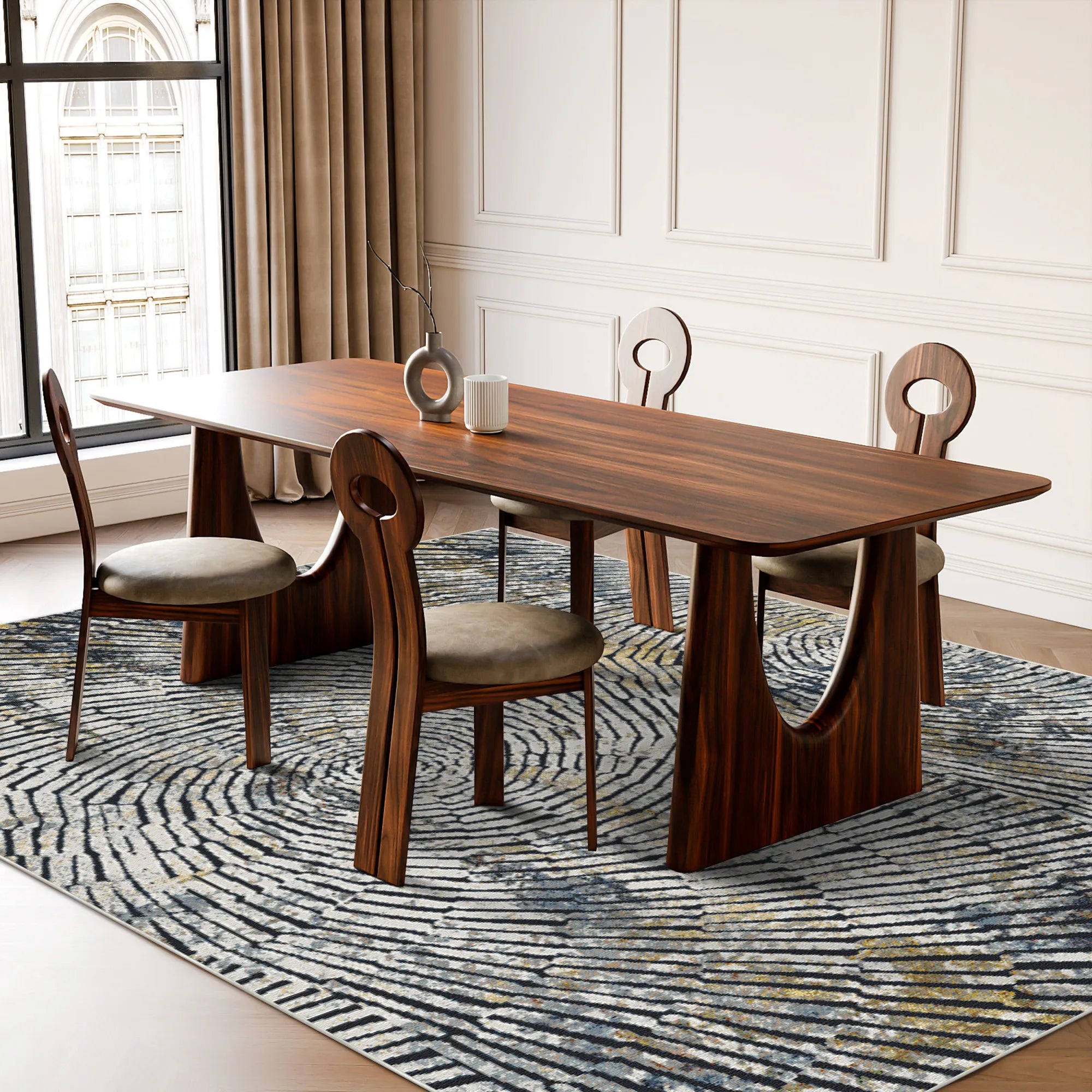 Während es als beeindruckendes abstraktes Kunstwerk für Ihren Boden dient, ist dieser Teppich für den Alltag konzipiert. Gefertigt aus hochwertigen, widerstandsfähigen Polyesterfasern bietet er eine strapazierfähige Oberfläche, die starkem Gebrauch standhält, ohne zu verblassen. Die integrierte rutschfeste Rückseite sorgt dafür, dass der Teppich fest an seinem Platz bleibt und Sicherheit sowie Stabilität bietet. Perfekt geeignet für moderne Haushalte, ist er vollständig maschinenwaschbar für mühelose Reinigung und verfügt über eine flache, gewebte Struktur mit niedrigem Profil, die es Saugrobotern ermöglicht, problemlos darüber zu fahren.