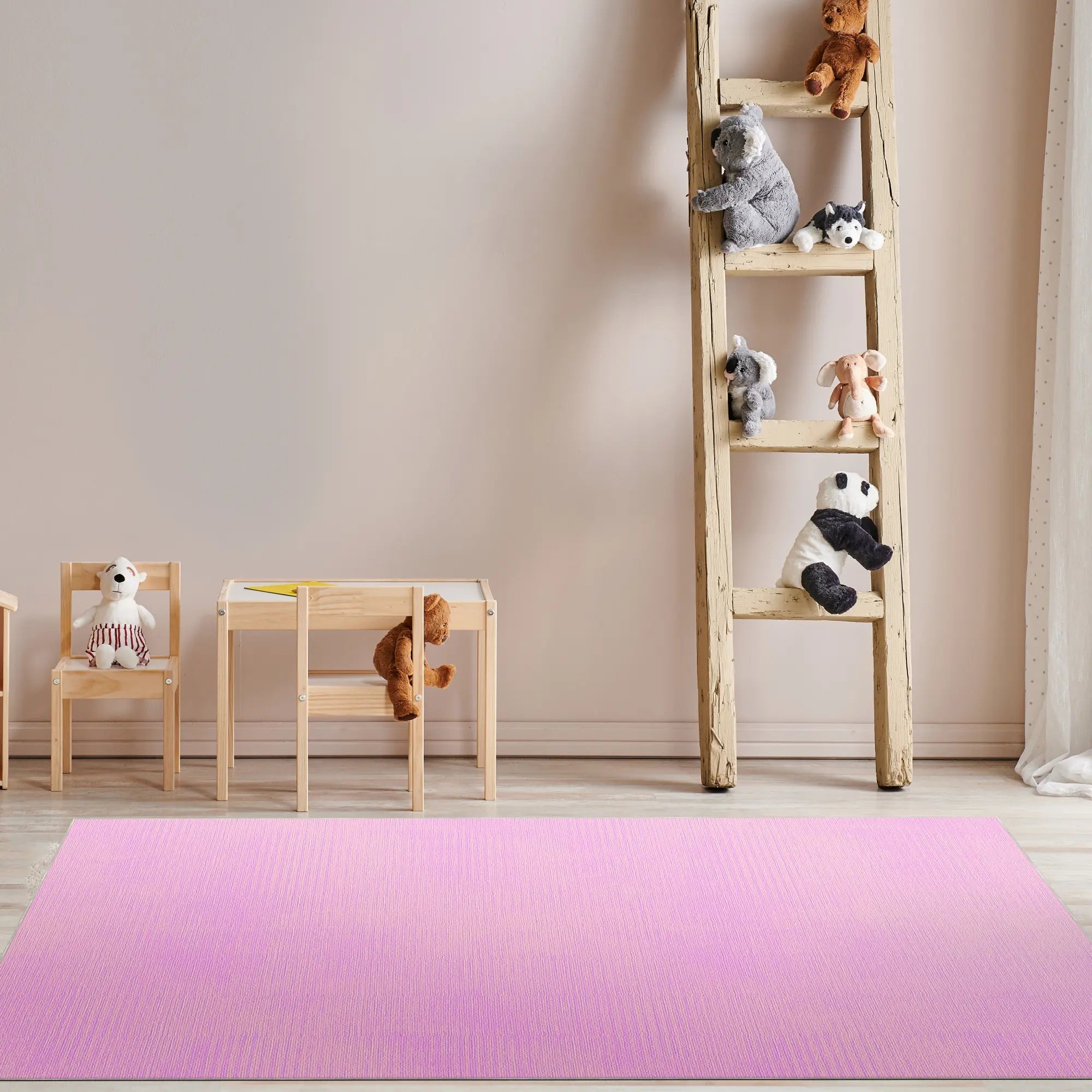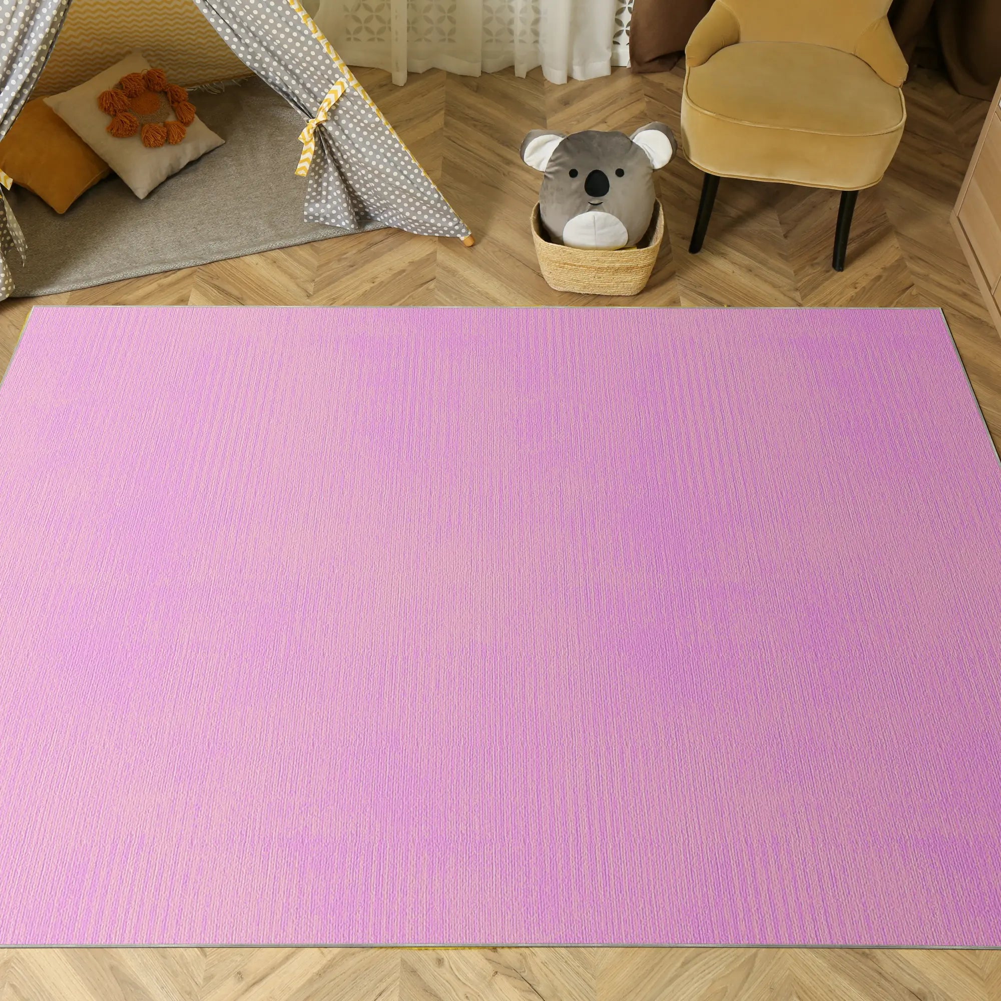 Verleihen Sie Ihrem Zuhause mit unserem waschbaren strukturierten Flieder-Teppich einen Hauch von sanfter Eleganz. Dieser wunderschöne Bodenbelag besticht durch eine zarte fliederfarbene Basis, die durch eine dezente melierte Textur mit feinen horizontalen Streifen veredelt wird. Sein vielseitiges und minimalistisches einfarbiges Design macht ihn zur perfekten Grundlage für ein traumhaftes Kinderzimmer, ein modernes Mädchenzimmer oder einen gemütlichen Spielraum. Wir wissen, dass die Pflege eines makellosen Zuhauses oberste Priorität hat – genau deshalb ist dieser hochwertige Teppich vollständig maschinenwaschbar. So können Sie Ihre Böden mühelos makellos und hygienisch sauber halten, ohne den Aufwand teurer professioneller Reinigung. Wenn sich im Alltag Flecken, Schmutz oder Staub ansammeln, legen Sie den Teppich einfach in die Waschmaschine für eine schnelle und unkomplizierte Auffrischung. Die strapazierfähige, weiche und flachflorige Verarbeitung bietet eine angenehme Oberfläche zum Barfußlaufen und täglichen Spielen, sodass dieses elegante Stück für jeden lebhaften Haushalt äußerst praktisch ist.